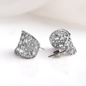 Rhodium Plated Cubic Zirconia Studded Drop Earrings – Silver