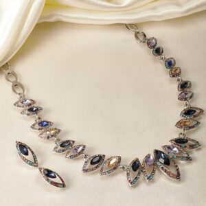 Rhodium-Plated Multicolor Gemstone & Cubic Zirconia Studded Choker Necklace Set – Silver