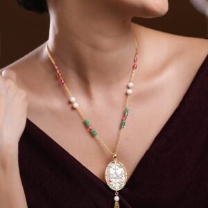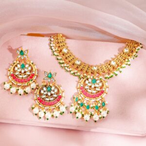 22KT Gold Plated Brass Red Stone Studded Necklace Set – Green