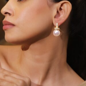 22KT Gold-Plated Pastel Pink & Cubic Zirconia Studded Chandelier with Pearl Drops – Gold