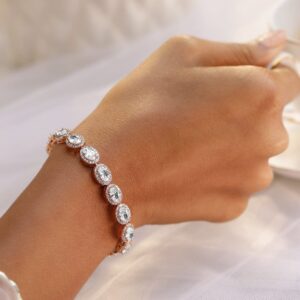 18K Rose Gold-Plated Oval-Cut AAA Cubic Zirconia Studded Premium Tennis Bracelet – Rose Gold