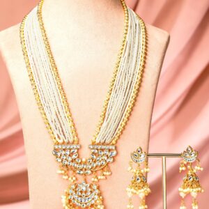 22K Gold-Plated Kundan Studded Multi-Strand Pearl Beaded Necklace Set – Gold