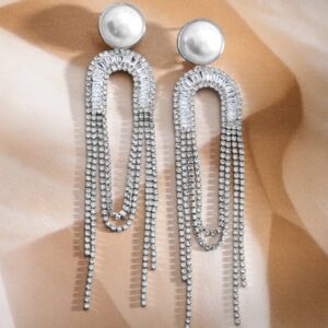 Rhodium Plated Cubic Zirconia Studded Tassel Drop Earrings – Silver