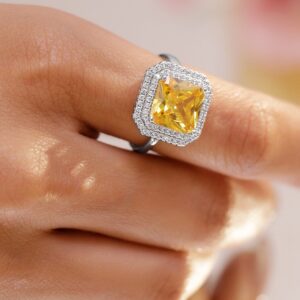 Rhodium-Plated Yellow Sapphire Adjustable Ring with Cubic Zirconia Detailing