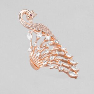 Rose Gold Plated Ring With Peacock Design And Studded AD – Rose Gold