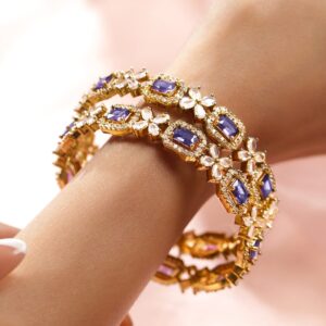 Set of 2 22K Gold-Plated Blue Sapphire & White Cubic Zirconia Studded Premium Bangles – 2.8