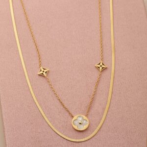 18K Gold-Plated Stainless Steel Tarnish-Free Waterproof Dual-Layered Necklace – Gold