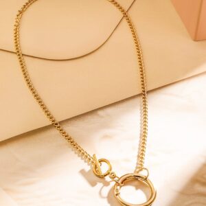 18K Gold Plated Statement Round Pendant Necklace with Toggle Clasp – Gold