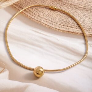 22K Gold Plated Stainless Steel TarnishFree Waterproof Necklace with Polished Sphere – Gold
