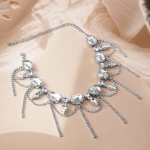 Rhodium Plated Crystal AD & Zirconia Studded Luxurious Choker Necklace – Silver