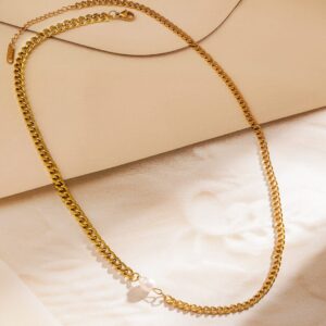 18K Gold-Plated Stainless Steel Tarnish-Free Waterproof Pearl Detail Curb Necklace – Gold