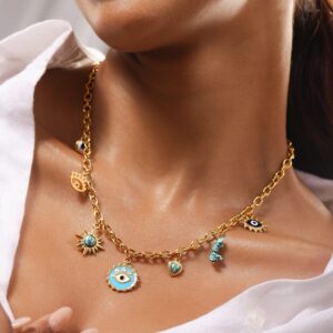 18K Gold-Plated StainlessSteel TarnishFree Waterproof Evil Eye Charm Chain Necklace – Gold