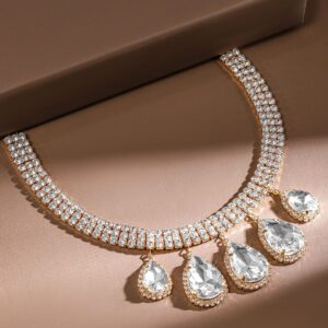 22K Gold Plated Crystal AD & White Cubic Zirconia Studded Party Choker – Gold
