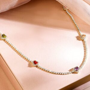 22K Gold Plated Multicolor AD & Cubic Zirconia Studded Heart Charm Tennis Necklace