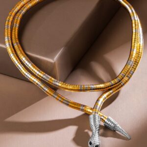 22K Gold & Silver Dual Tone Snake Motif Bold Statement Necklace Demi Fine & Luxe – Gold