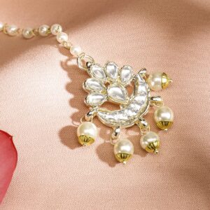 Off-White 24K Gold-Plated Kundan Studded & Beaded Handcrafted Maang Tikka