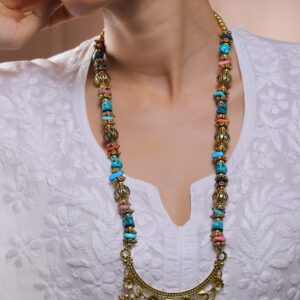 22K Gold-Plated Handcrafted Long Necklace with Ornate Beaded Motifs for Women