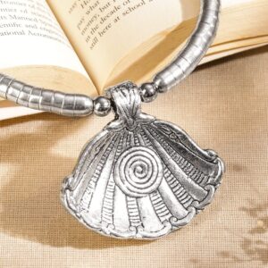 Oxidized Silver-Plated Shell Design Statement Choker Necklace for Women