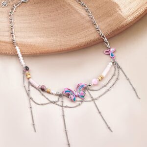 Rhodium-Plated Butterfly Pendant Layered Choker Necklace – Silver