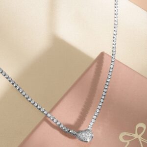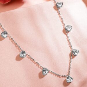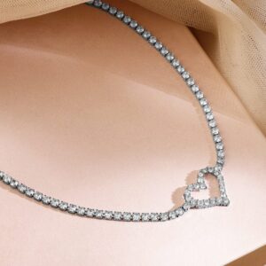 Rhodium-Plated Heart-Shaped Cubic Zirconia Studded Tennis Statement Necklace