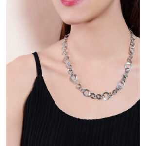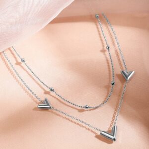 Rhodium-Plated Stainless Steel Tarnish-Free Waterproof Double-Layer Charm Necklace – Silver