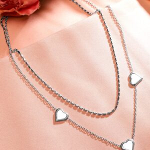 Rhodium-Plated Stainless Steel Tarnish-Free Waterproof Enamel Heart Layer Necklace – Silver