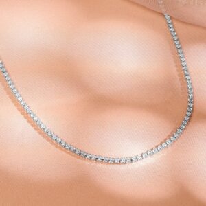 Rhodium-Plated White Cubic Zirconia Studded Classic Tennis Necklace – Silver