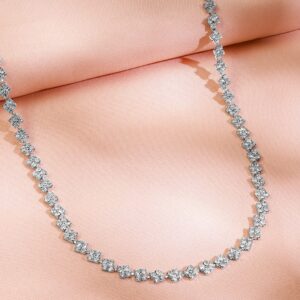 Rhodium Plated AD & Cubic Zirconia Studded Elegant Tennis Necklace – Silver