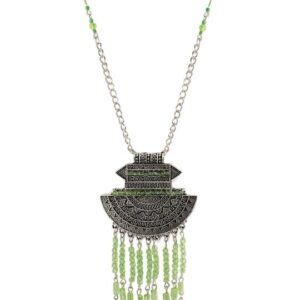 Oxidized Silver Green Crystal Tassel Necklace – Green::Silver