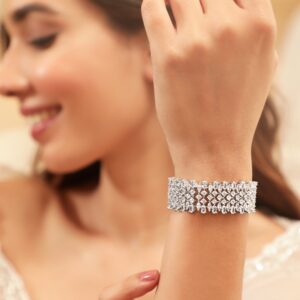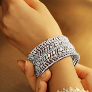 Set of 2 Rhodium-Plated White Cubic Zirconia Studded Handcrafted Luxe Bangles for Women – 02-Apr