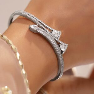 Rhodium-Plated AAA Cubic Zirconia Studded Premium Openable Bangle Bracelet – Silver