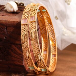 Set of 2 18K Gold-Plated AD Studded Floral Filigree Handcrafted Bangles – 02-Apr