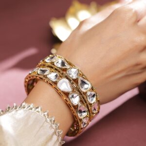 Set of 2 18K Gold-Plated Kundan & AD Studded Handcrafted Premium Bangles for Women – 2.6
