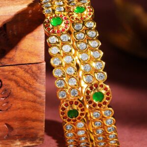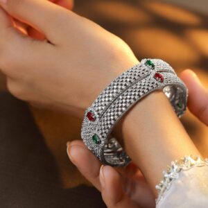 Set of 2 Rhodium-Plated Ruby Emerald and Cubic Zirconia Studded Premium Bangles – 02-Aug
