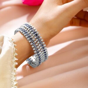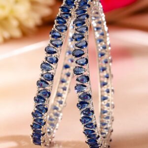 Set of 2 Rhodium-Plated Blue Sapphire Studded Handcrafted Premium Bangles – 02-Jun