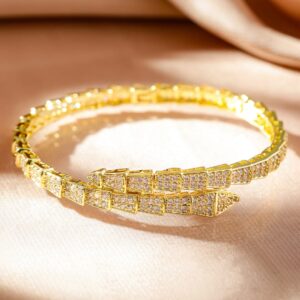 22K Gold-Plated Snake Motif Bangle with Dazzling Cubic Zirconia – Gold