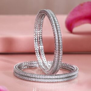 Set of 2 Rhodium-Plated White Cubic Zirconia Studded Handcrafted Luxe Bangles for Women – 02-Apr