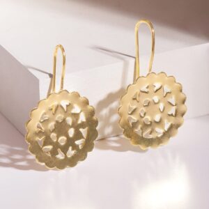 Be the first to review “18 KT Gold-Plated Circular Filigree Drop Earrings – Gold”