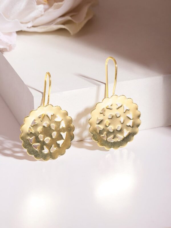 18 KT Gold-Plated Circular Filigree Drop Earrings – Gold