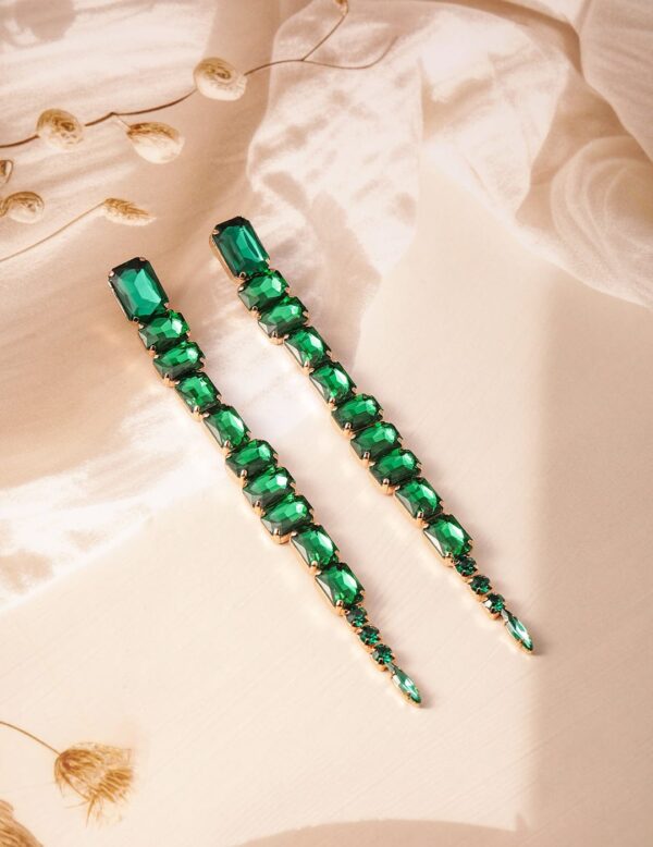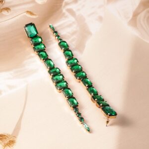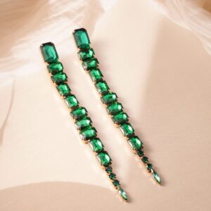 Elevate your style with these luxurious 18K Gold Plated Shoulder Duster Drop Earrings, intricately studded with vibrant Emerald Green stones. The elongated design adds a dramatic flair, making these earrings the perfect statement piece for a glamorous look. Crafted with attention to detail, these earrings are ideal for adding a touch of elegance to any outfit. The secure setting ensures durability, while the dazzling emerald green stones capture the light beautifully, enhancing your overall ensemble. Perfect for those who appreciate bold and sophisticated jewelry. Material: Wipe with a clean, dry cloth to remove dust Size : Length : 14 cm, Width : 2 cm