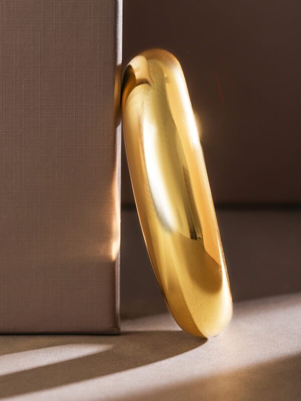 Bracelet : 18K gold-plated cuff bangle exudes modern luxury with its sleek, sculptural design. Its high-polish finish adds a statement-worthy shine, making it a must-have for effortless elegance. Occasion : Bring your style to a whole new level with this handcrafted piece of jewellery. When you’re celebrating a special Occasion : – a birthday, wedding, or personal milestone – this piece adds that extra something that makes us feel special and looking our best. Material : & Care Dimension : Length : 7.5 cm, Width: 3.5 cm Net Weight: 20.50g Net Quantity : 1 Bracelet Material :Brass Care Label : It is advisable to avoid contact with water and organic chemicals i.e. perfume sprays. Store jewellery in airtight box. After use, wipe the jewellery with soft cotton cloth.