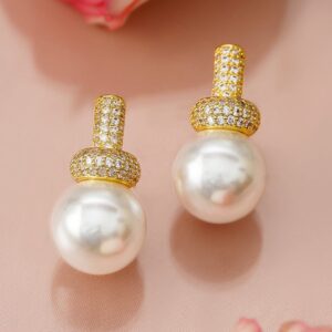 Earrings : These rhodium-plated drop earrings feature a cubic zirconia-studded lever-back design paired with lustrous white pearl drops, adding a refined and timeless charm to any look. Occasion & Styling: Perfect for festive celebrations, formal occasions, or elegant evenings, these earrings offer a timeless charm that complements sarees, gowns, and Indo-western looks effortlessly. Material : & Care Dimension : Length : 2.5 cm ; Width : 1 cm Net Weight : 18 Gram Material : Brass Net Quantity : 1 Pair of Earrings Care Label : It is advisable to avoid contact with water and organic chemicals i.e. perfume sprays. Store jewellery in airtight box. After use, wipe the jewellery with soft cotton cloth.