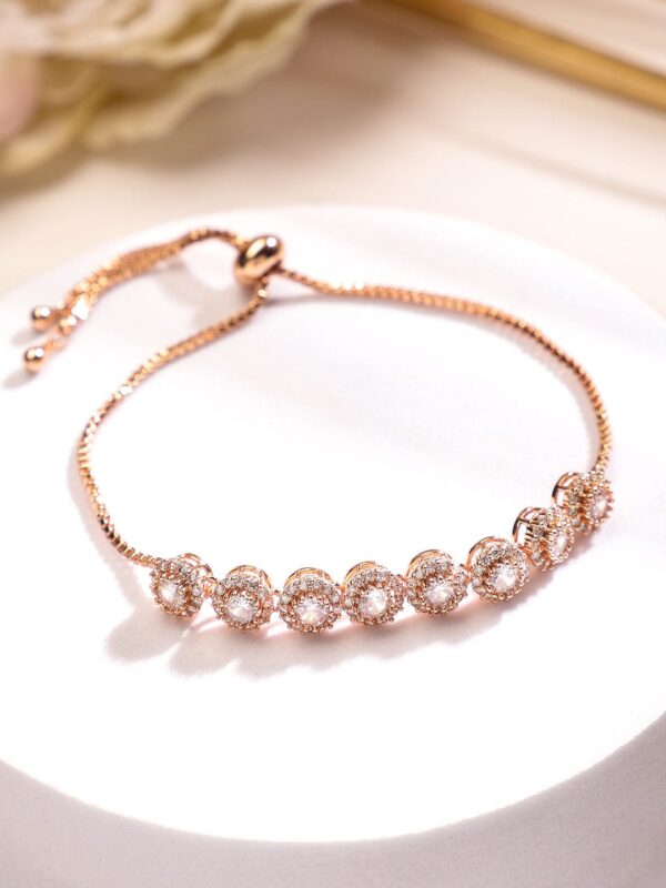 18K Rose Gold Plated Cubic Zirconia Studded Adjustable Pull-Chain Bracelet – Rose Gold