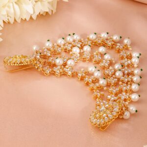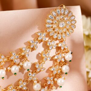 Hair Accessories : Crafted for women, brides, and bridesmaids, this 22K gold-plated hair accessory features a crescent kundan design and multilayer pearl beads—perfect for weddings, sangeet & festive events. Occasion : Bring your style to a whole new level with this handcrafted piece of jewellery. When you’re celebrating a special Occasion : – a birthday, wedding, or personal milestone – this piece adds that extra something that makes us feel special and looking our best. Material & Care Dimension : Size : Length : 15 cm ,Width : 3 cm Material : Brass Net Weight : 59 g Net Quantity : 1 Hair Accessories Care Label : It is advisable to avoid contact with water and organic chemicals i.e. perfume sprays. Store jewellery in airtight box. After use, wipe the jewellery with soft cotton cloth.