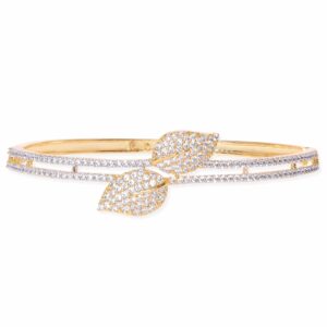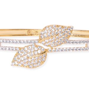 “Elegant 22K Gold-Plated Zirconia Leaf Bracelet: A delicate masterpiece with a sleek design, adorned with shimmering Zirconia stones. This bracelet adds a touch of nature-inspired beauty to any outfit.” Material & Care Length : Free Size Material: Brass Net Weight: 9.95 Gram Net Quantity: 1 Bracelet Care Label: It is advisable to avoid contact with water and organic chemicals i.e. perfume sprays. Store jewellery in airtight box. After use, wipe the jewellery with soft cotton cloth.