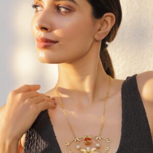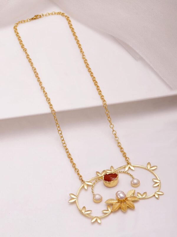 Allow the sterling Gold to remind you to keep your glittery full of love. Our handcrafted necklace can be worn with a variety of outfits due to its ideal fit. The pendant is made of polished Gold and is studded with Pearl & stones. Material & Care Dimension : Length : 64 cm, Width : 9.5 cm Material : Brass Care Label : Care for your 925 Silver jewellery by removing it prior to bathing, swimming or any sporting activity And Avoid contact with make up, perfumes And lotion