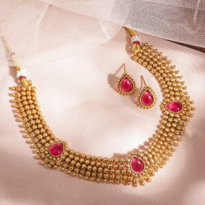 You can never go wrong with this classic piece of jewellery. With just the right amount of charm and style, it can take you from a busy day at work to an impromptu night out with colleagues or friends. Occasion : Bring your style to a whole new level with this handcrafted piece of jewellery. When you’re celebrating a special Occasion : a birthday, wedding, or personal milestone this piece adds that extra something that makes us feel special and looking our best. Material & Care Dimension :Size : Necklace : 20 cm, Earrings : 1.5 cm Material: Brass Net Weight: 38.96 Gram Net Quantity: 1 Necklace & 1 Pair of Earrings Care Label: It is advisable to avoid contact with water and organic chemicals i.e. perfume sprays. Store jewellery in airtight box. After use, wipe the jewellery with soft cotton cloth.