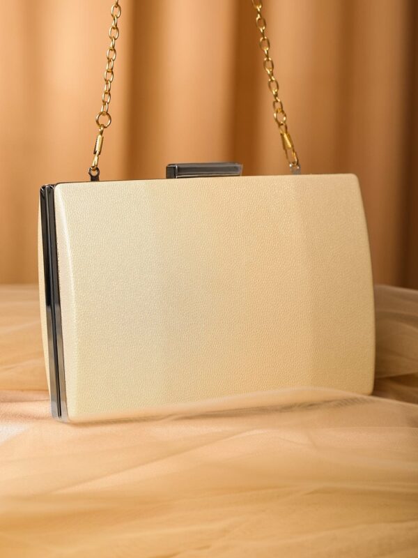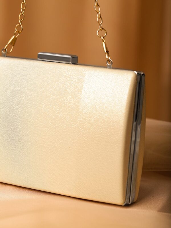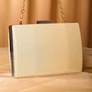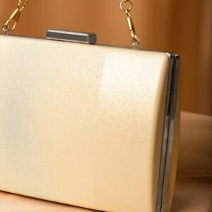 Clutches : Elevate your elegance with this champagne gold-tone glossy box clutch, featuring a sleek metallic finish, a secure clasp closure, and a detachable chain strap. A perfect blend of style and sophistication for evening glamour. Occasion : Bring your style to a whole new level with this handcrafted piece of jewellery. When you’re celebrating a special Occasion : – a birthday, wedding, or personal milestone – this piece adds that extra something that makes us feel special and looking our best. Material : & Care Dimension : Length : 15 cm, Width: 7 cm Net Weight: 125 g Net Quantity : 1 Clutches Care Label : It is advisable to avoid contact with water and organic chemicals i.e. perfume sprays. Store jewellery in airtight box. After use, wipe the jewellery with soft cotton cloth.