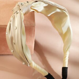 Hair Accessory : This cream satin headband features a knotted design adorned with sparkling crystals, adding a touch of sophistication to any outfit. Perfect for casual, formal, and festive looks. Occasion : Bring your style to a whole new level with this handcrafted piece of jewellery. When you’re celebrating a special Occasion : – a birthday, wedding, or personal milestone – this piece adds that extra something that makes us feel special and looking our best. Material : & Care Dimension : Length : 15 cm, Width: 5.5 cm Net Weight: 33.50 g Net Quantity : 1 Hair Accessory Material :Fabric Care Label : It is advisable to avoid contact with water and organic chemicals i.e. perfume sprays. Store jewellery in airtight box. After use, wipe the jewellery with soft cotton cloth.