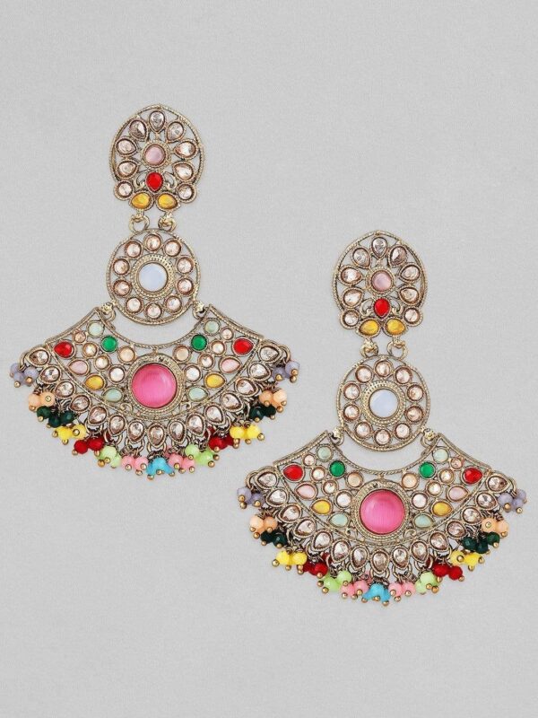 Chandbali Earrings ¬† One of the most versatile forms of ornate designs that goes well with every style and personality. Wear one of these and you don‚Äôt have to worry about any other accessory. Occasion : ¬† Bring your style to a whole new level with this handcrafted piece of jewellery. When you’re celebrating a special Occasion : – a birthday, wedding, or personal milestone – this piece adds that extra something that makes us feel special and looking our best. Material & Care Dimension : ¬† Length 8.6 cm¬† Material :¬†¬†Brass Care Label : ¬† It is advisable to avoid contact with water and organic chemicals i.e. perfume sprays. Store jewellery in airtight box. After use, wipe the jewellery with soft cotton cloth.